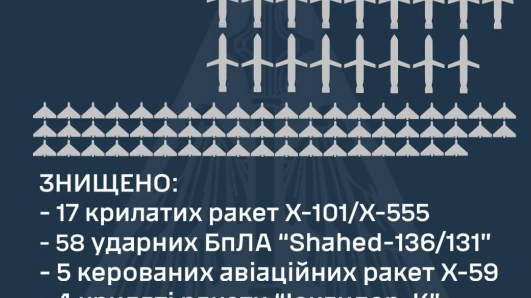 Как сообщили в командовании ВВС ВСУ, в ночь на 29 марта 2024 года противник нанес мощный ракетно-авиационный удар по объектам топливно-энергетического сектора Украины, применив различные типы ракет и ударные БПЛА: