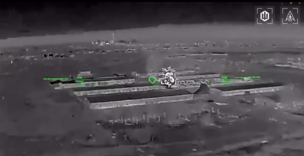База была обнаружена в н.п. Совхозное под Симферополем. По ней был нанесен массированный удар беспилотниками.