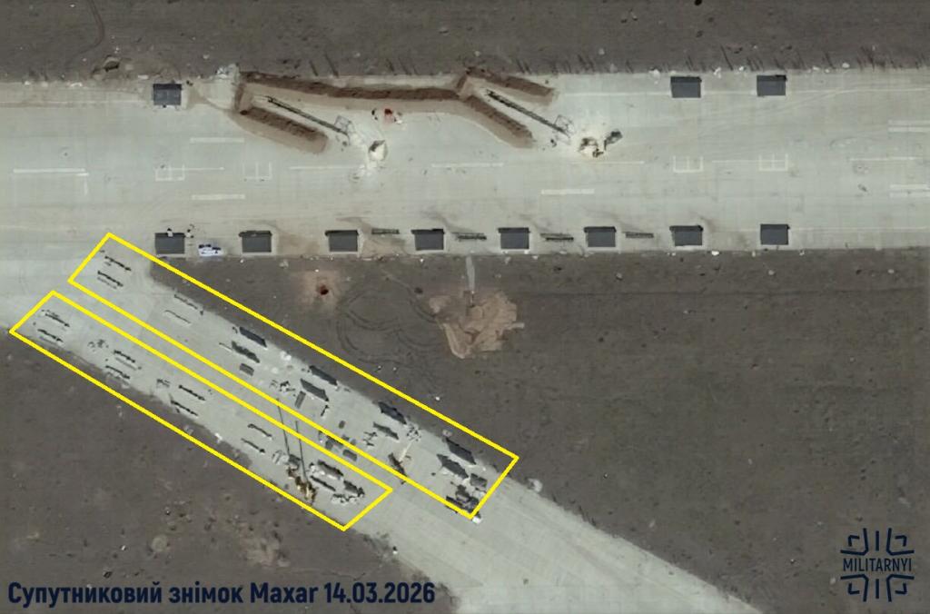 Ранее вблизи пусковых установок исчезли восемь гаражей. Их полностью убрали с территории после украинской атаки в начале марта. В то же время в районе аэродрома зафиксировано появление новых фортификационных сооружений — оккупанты достроили четыре бетонных бункера.