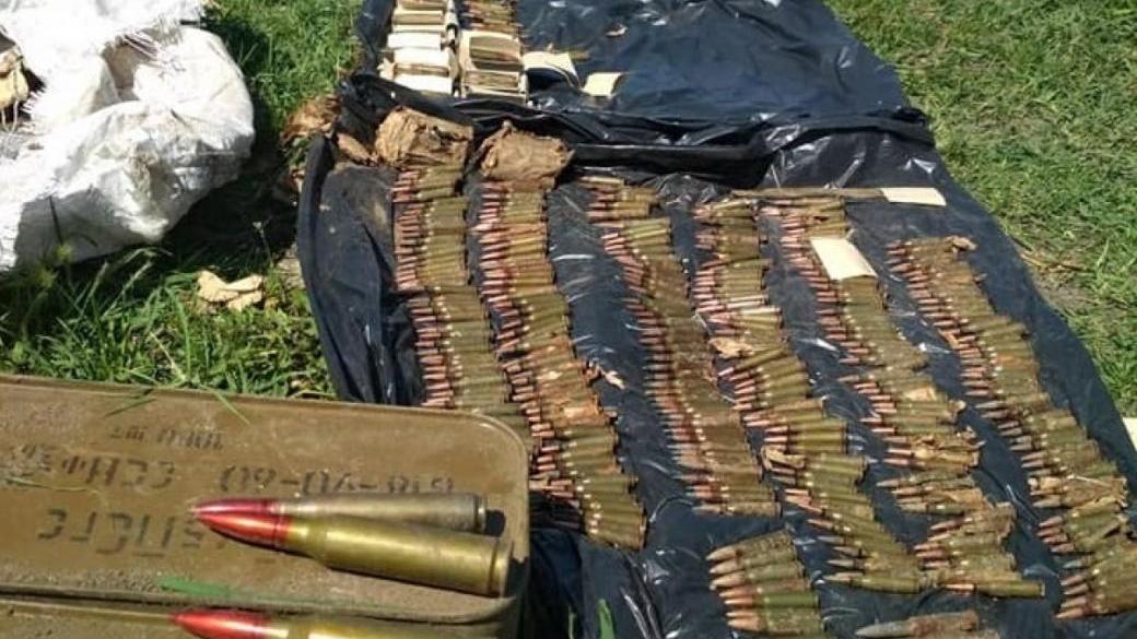 Пресс-секретарь Донецкого погранотряда Валерия Карпиленко сообщает: «В земляном тайнике оперативниками обнаружено почти 3000 патронов различных калибров, в частности: 5.45; 7.62; 12.7. Патроны находились неподалеку от жилых домов и трассы Мариуполь-Донецк, и могли быть использованы вражескими диверсантами».