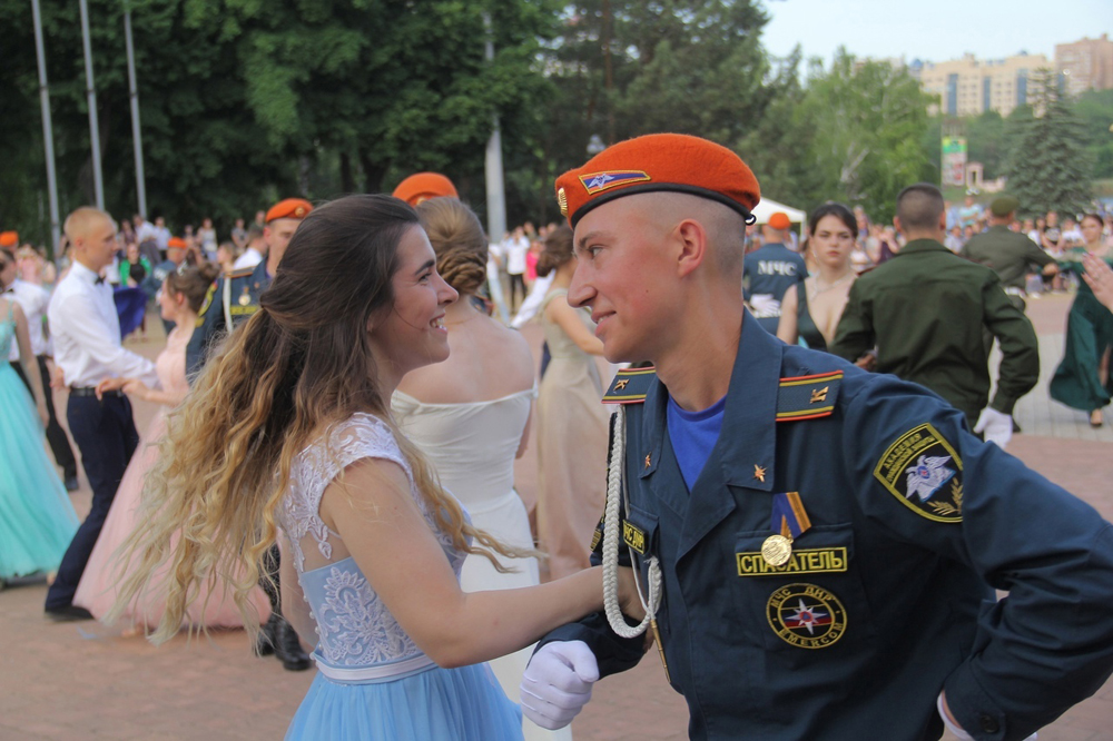 «Бал» прошел сегодня, 29 мая. Под аккомпанемент духового оркестра Донецкой музыкальной Академии имени С.С. Прокофьева курсанты «академии гражданской защиты» станцевали 7 танцев.