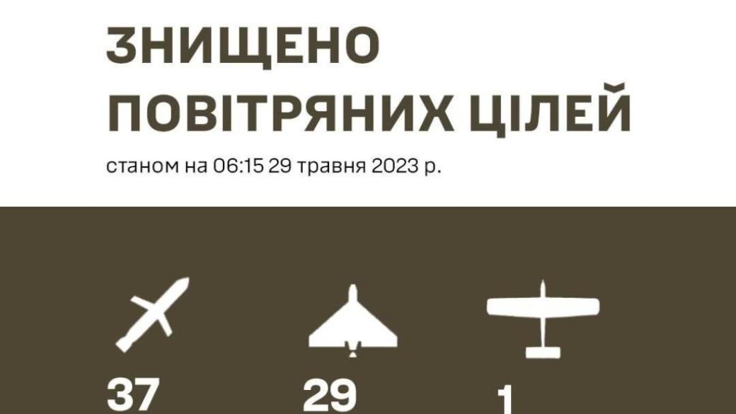 Силами и средствами воздушных командований во взаимодействии с противовоздушной обороной других составляющих Сил обороны Украины уничтожено 67 воздушных целей: