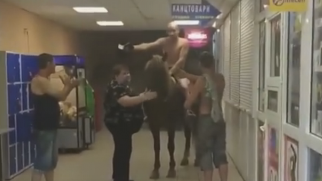В Киеве мужчина верхом на лошади и в одних трусах заехал в супермаркет за покупками. Об этом сообщает «Киев оперативный».