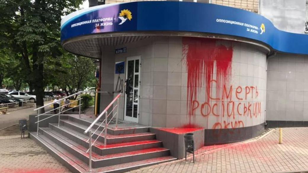 В Краматорске (Донецкая область) неизвестные лица нанесли несколько надписей на стены офиса партии «Оппозиционная платформа За жизнь» Виктора Медведчука. Об этом сообщают местные жители в социальных сетях.