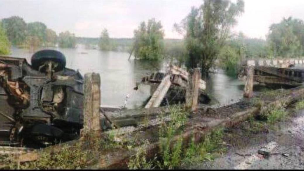 В результате мост разрушен, один человек погиб, двое ранены. По предварительным данным, причиной повреждения стала молния, которая попала в опору моста, где находилась мина. Движение транспорта невозможно.