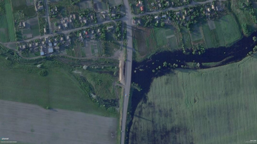Bellincat публикует спутниковые снимки, на которых видно, что россияне при создании указанной дамбы на реке Токмачке уже затопили нижележащие районы, что приведет к поднятию уровня воды, заболочению и пересыханию водохранилищ.