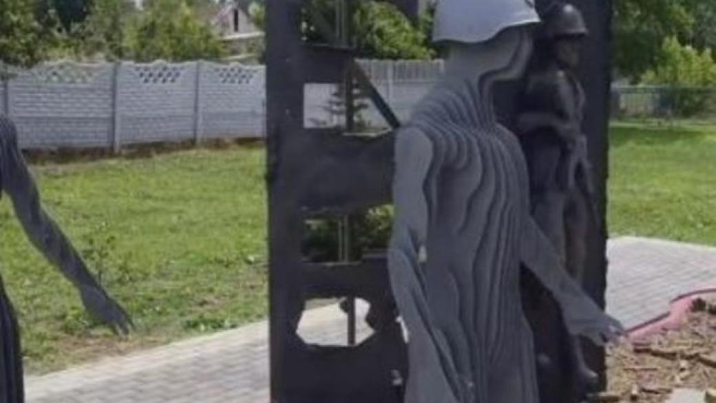 Памятник необычный, фигуры «киборгов», защищавших Донецкий аэропорт, на нем постепенно исчезают.