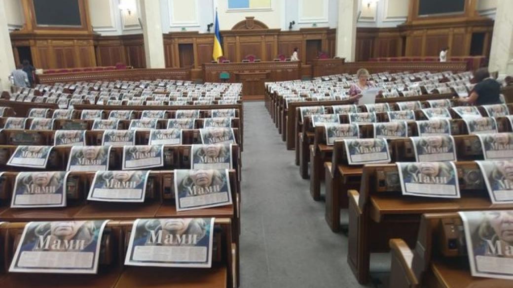 В Верховной Раде на депутатских креслах разложили выпуск газеты «Зеркало недели», в котором изображены фотографии 321 мамы, потерявшей детей в войне на Донбассе. Фотографию из зала заседания обнародовал экс-заместитель главреда газеты, депутат Верховной Рады от «Голоса» Сергей Рахманин.