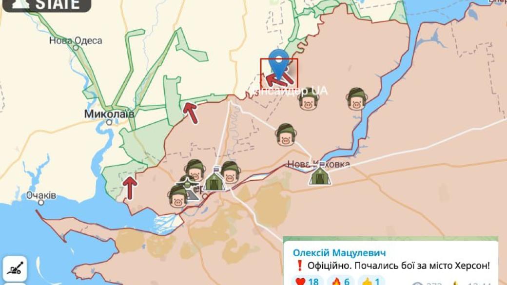 В свою очередь, зампредседателя Одесской областной военной администрации Алексей Мацулевич официально заявил, что начались бои за Херсон. Ждем подробностей.