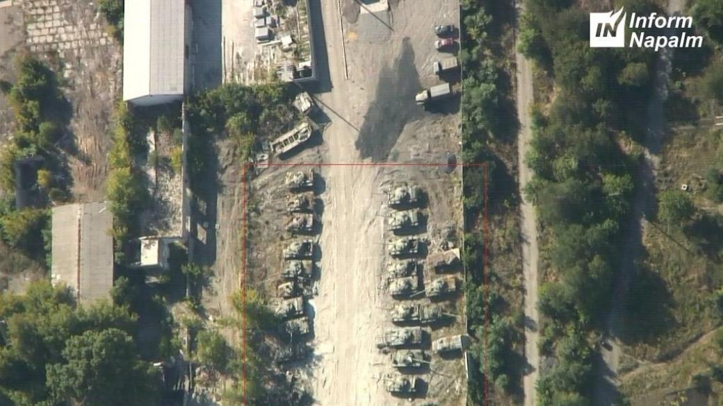 Отмечается, что кроме автомобильной техники, тягачей МАЗ-537, БМП, КШМ и МТ-ЛБ там присутствует более 20 танков Т-64БВ и Т-72Б разных модификаций (калибр 125 мм), а также, как минимум, 2 единицы САУ 2С1 «Гвоздика» (калибр 122 мм).
