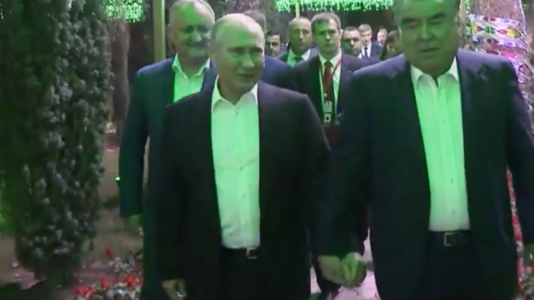 Пользователи соцсетей позабавило фото президентов России и Таджикистана, которые во время встречи глав СНГ прогуливаются по саду, держась за руки.