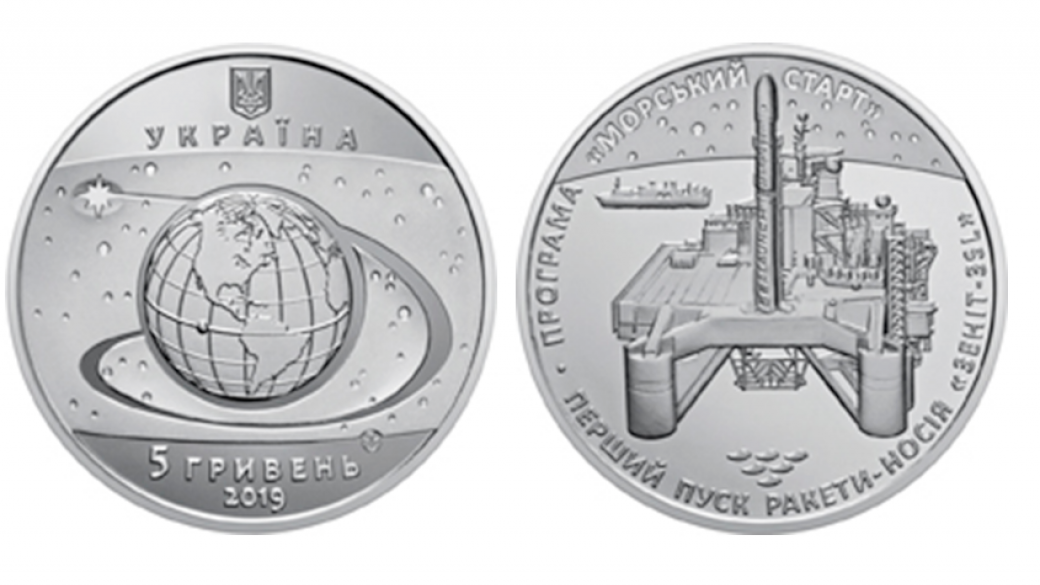 «С 19 сентября 2019 Национальный банк Украины вводит в обращение памятную монету номиналом в 5 гривен «Первый пуск ракеты-носителя» Зенит-3SL «.-сказано в сообщении.