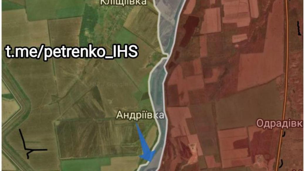 Севернее Клещеевки продолжаются бои в лесопосадке у железной дороги, где расположен крупный опорный пункт противника. Северо-восточнее Клещеевки продолжаются позиционные бои. По сообщениям с мест, российские войска отступили за железную дорогу с последнего участка лесополосы перед железной дорогой на участке Клещеевка-Андреевка.