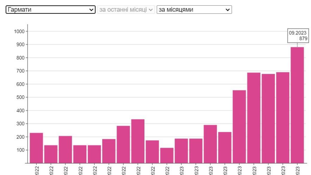 Пропорциональное размещение артиллерии вдоль ЛБС сокращается, возможности огневого поражения снижаются. Такие потери вынуждают выводить из консервации всё более старые и примитивные, буксируемые образцы, сталинских времён, чтобы дотягивать в месяц хотя бы до поставки в 300 стволов в зону боевых действий. Компонента САУ у российских оккупационных войск становится чрезвычайно редкой, в связи с чем падает и мобильность, отметил он.