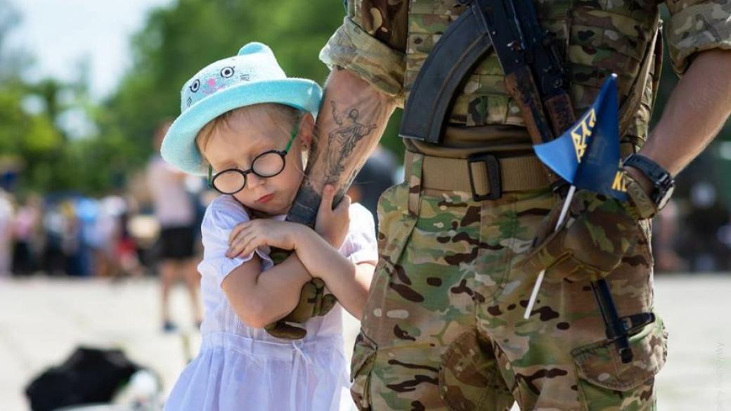 Его фото под названием «Доця» не могло остаться незамеченным. На снимке — малышка, которая крепко прижимается к руке своего отца — бойца батальона «Азов».