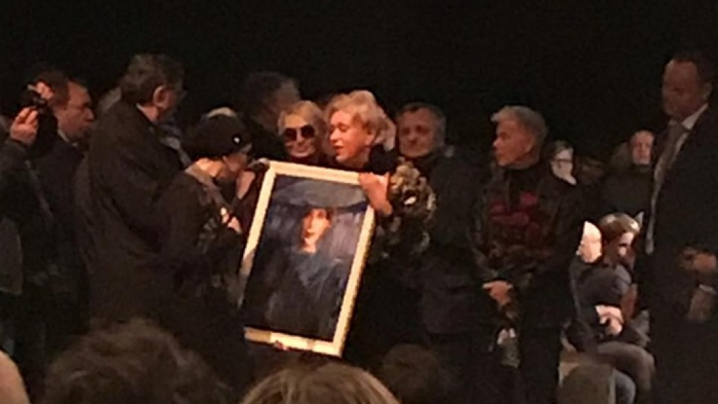 Людмила Поргина, после речи Чуриковой подарила ей картину, исполнив последнюю волю актера.