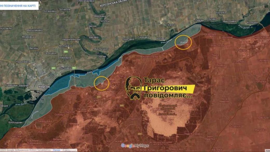 Уже достаточно опубликовано видеоподтверждений присутствия наших украинских сил в селе. Крынки, но там только серая зона, утверждает ТГ-канал Тарас Григорович повідомляє.