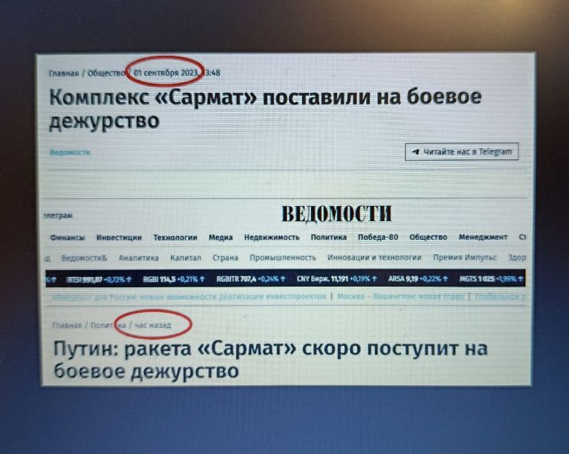 "Два года назад россия официально заявила, что «Сармат» встал на боевое дежурство. Сегодня путин заявил, что «Сармата» на дежурстве до сих пор нет", - констатируют роспаблики.