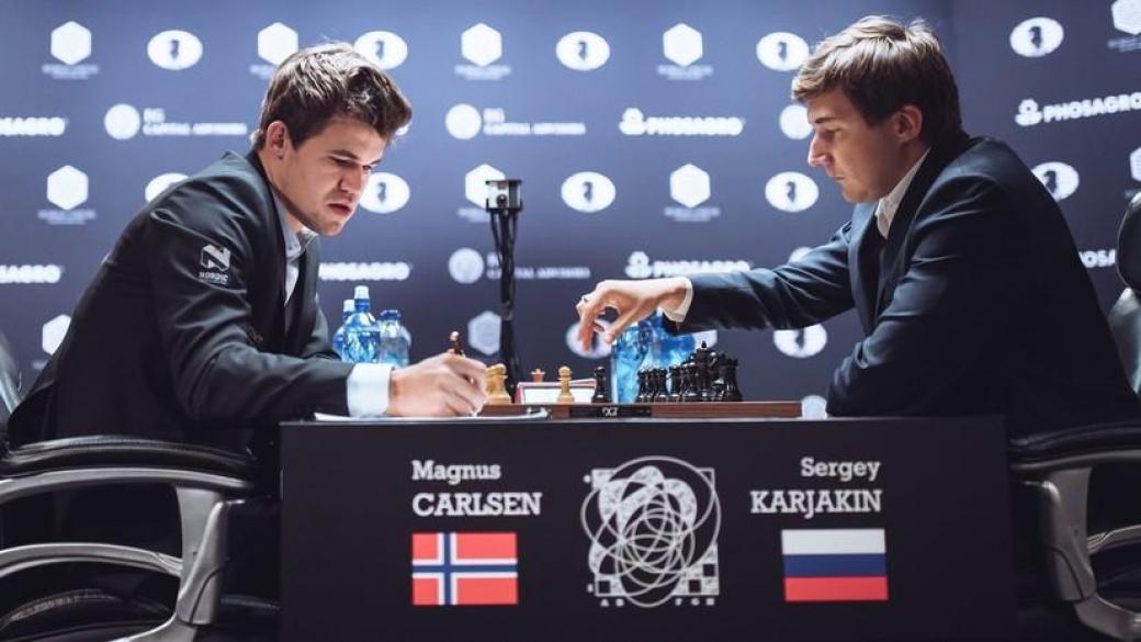 В Нью-Йорке прошла 12-я партия матча за мировую шахматную корону между гроссмейстерами Магнусом Карлсеном и Сергеем Карякиным. Они провели за столом лишь 35 минут и спустя всего 60 ходов заключили самый быстрый мир в данном противостоянии.