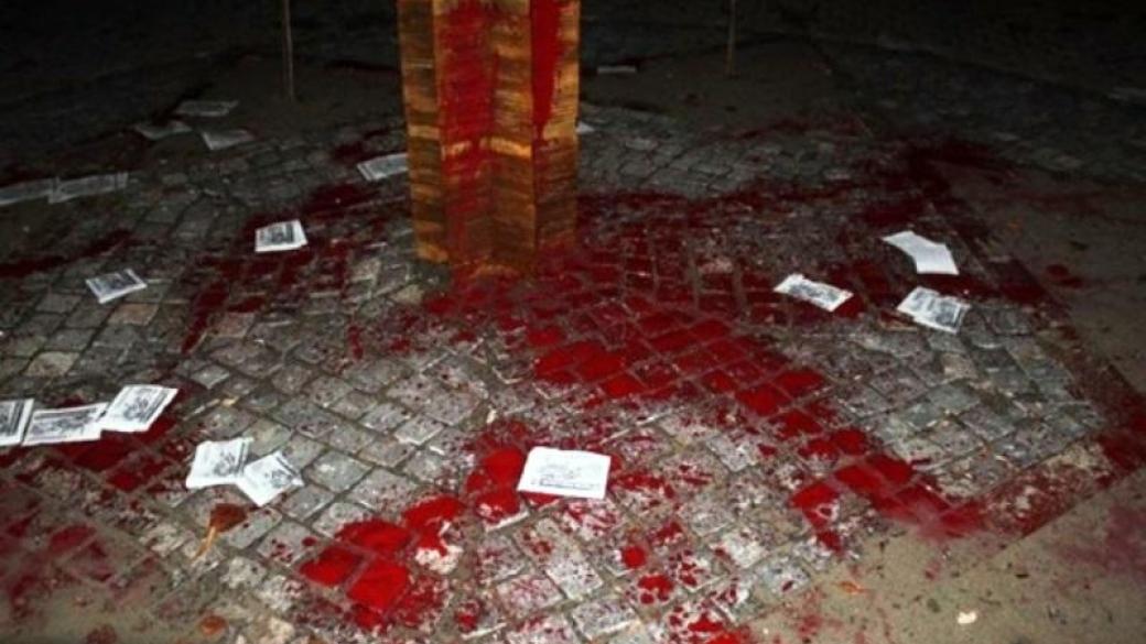Вчера в центре Ужгорода неизвестные в масках облили красной краской памятник жертвам Холокоста.