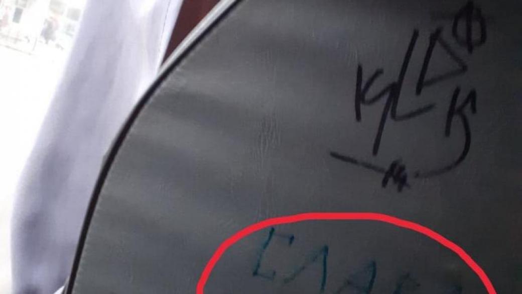 Освещающий жизнь в ОРДО блогер @donetchanyn в своем Тelegram-канале разместил фото, на котором показана надпись «Слава Украине!», сделанная шариковой ручкой на спинке сидения пассажирского автобуса, который ездит по 77 маршруту.