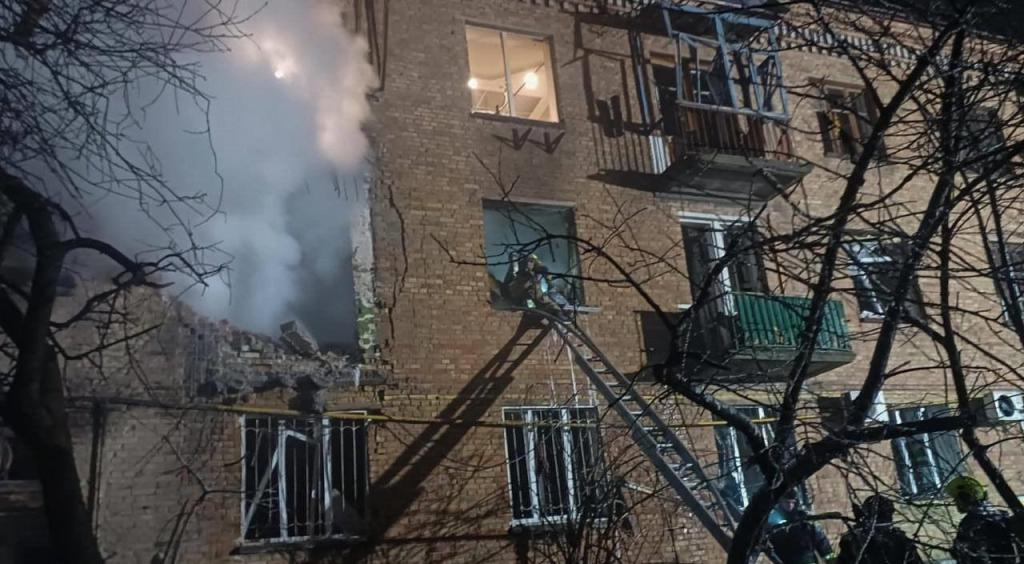 · В Святошинском районе Киева произошло попадание обломков в подъезд трехэтажного жилого дома, а в Дарницком районе обломки упали на кровлю двухэтажного здания.