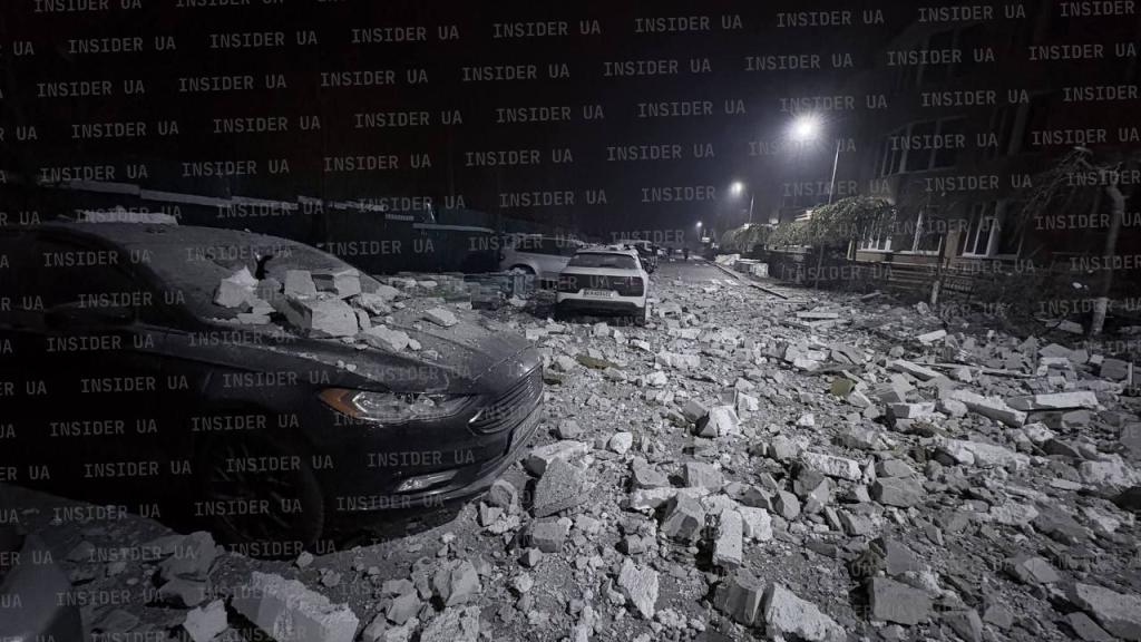 · В Соломенском районе в результате падения обломков на 25-этажный жилой дом произошло частичное разрушение фасада с 1 по 3 этажи. Повреждены машины во дворе. Также в Соломенском районе обломки упали на крышу 17-этажного дома.
