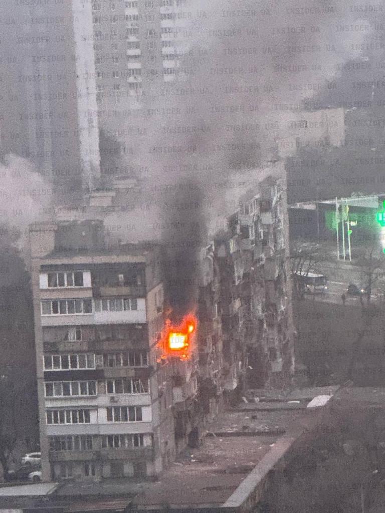 · В Шевченковском районе в результате падения обломков на 14-этажный дом вспыхнули квартиры на уровне 4-5 этажей.