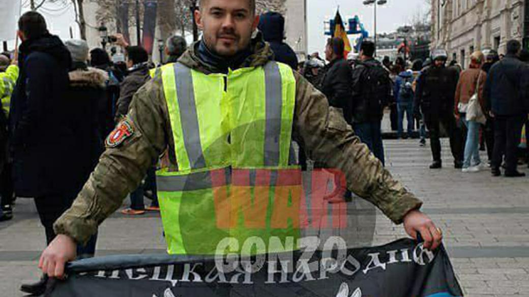 На акции протеста «желтых жилетов» во Франции замечен человек с нашивками незаконного вооруженного формирования «Пятнашка», действующего на Донбассе. Соответствующее фото опубликовал в соцсети ВКонтакте российский пропагандист Семен Пегов, автор проекта «WarGonzo».