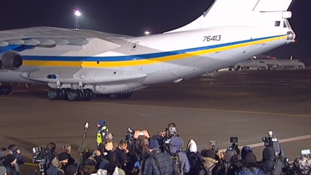 Борт с особожденными из плена гражданами Украины прибыл в аэропорт Борисполь. На взлетной полосе их встречает президент Украины.
