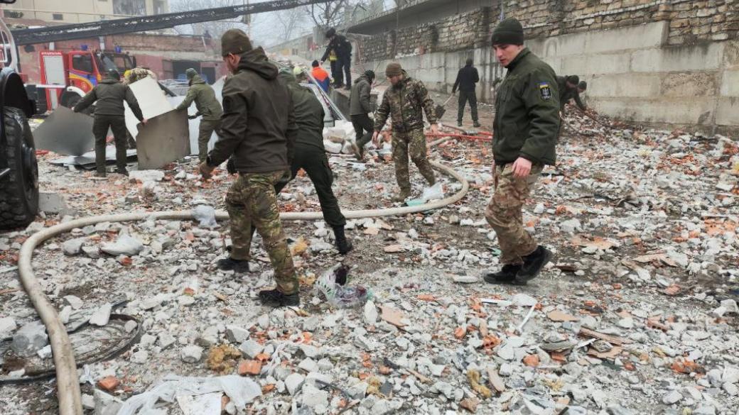 На месте одного из очередных терактов разбирают завалы и ликвидируют последствия.