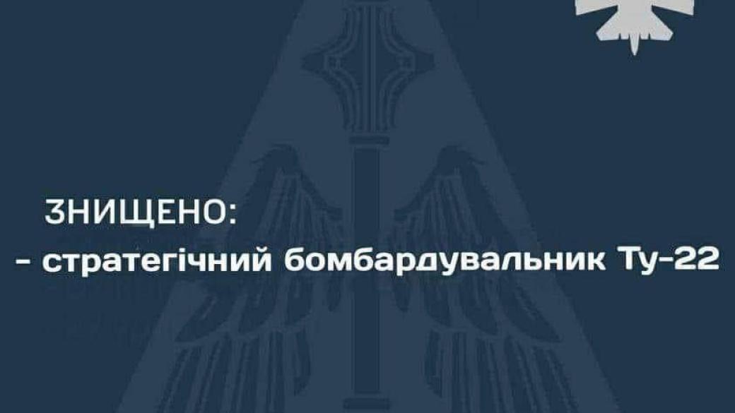 В Воздушных силах Украины подтвердили уничтожение стратегического российского бомбардировщика Ту-22.