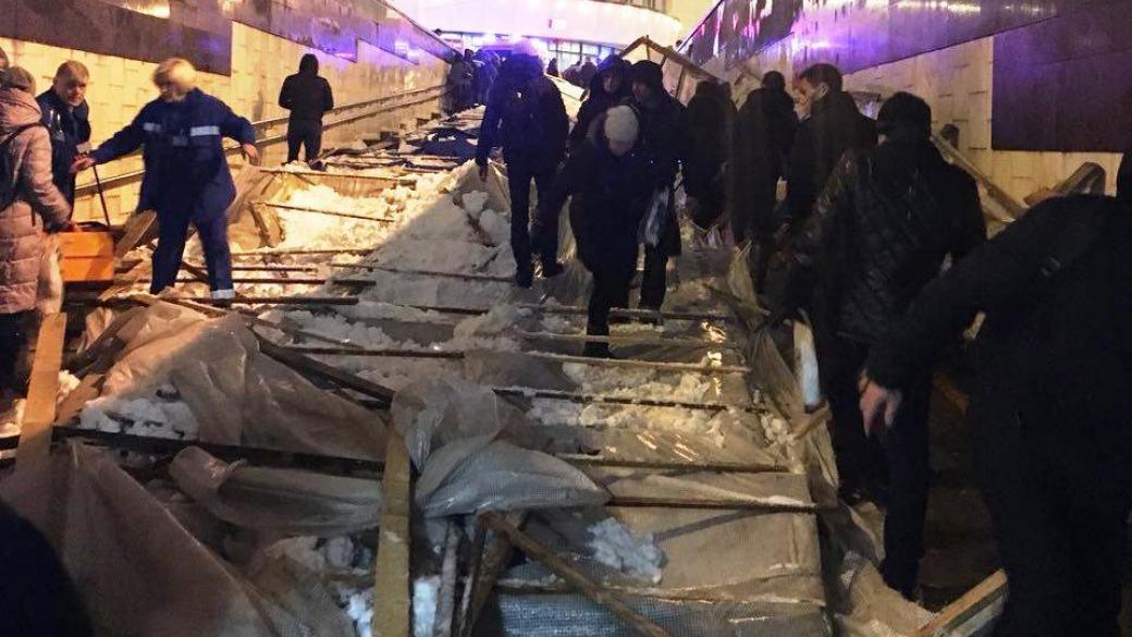 В центре Москвы строительные леса обрушились в подземный переход на головы граждан, в результате чего, травмы получили не менее 10 человек.