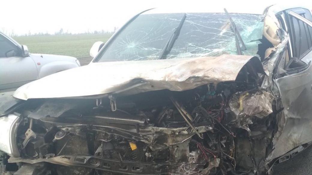 «По предварительной информации, водитель автомобиля Тойота не справился с управлением выехал на встречную полосу движения и столкнулся с фурой „DAF“. Водитель фуры пытался уйти от лобового столкновения, съехал на обочину и застрял. По словам очевидцев, авария произошла из-за скользкой дороги».