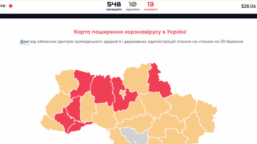 Как уточнили в Центре общественного здоровья, в Украине 548 лабораторно подтвержденных ПЦР-исследованием случаев COVID-19. В Минздраве добавили, что 13 человек скончались, а всего 8 человек уже выздоровели.
