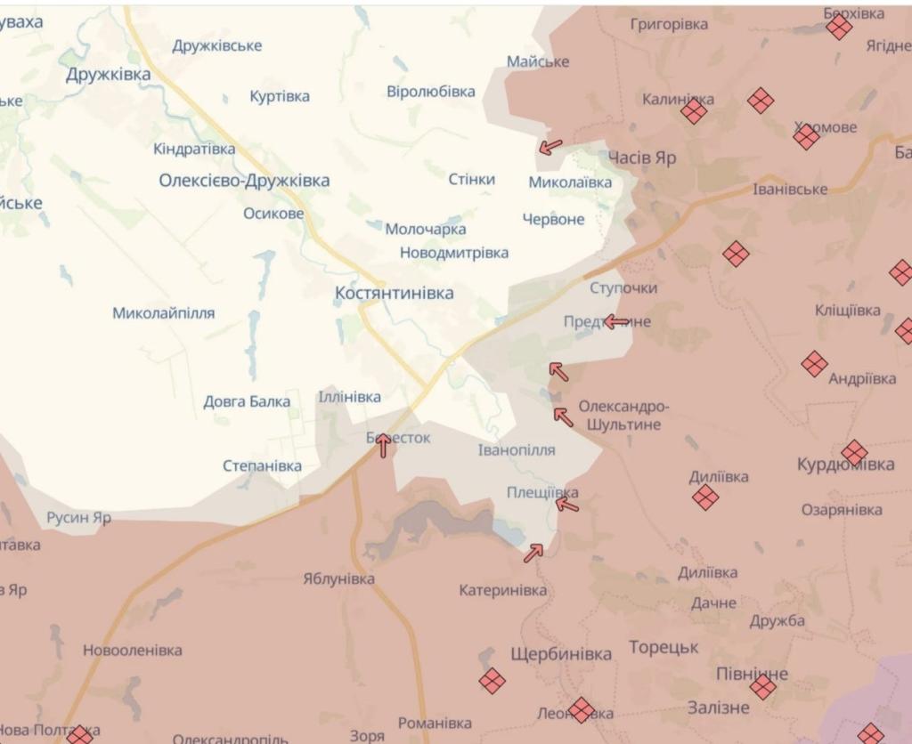 Оккупационные войска имели успех на Константиновском и Покровском направлениях в Донецкой области. Об этом сообщает украинский информационный ресурс DeepState.