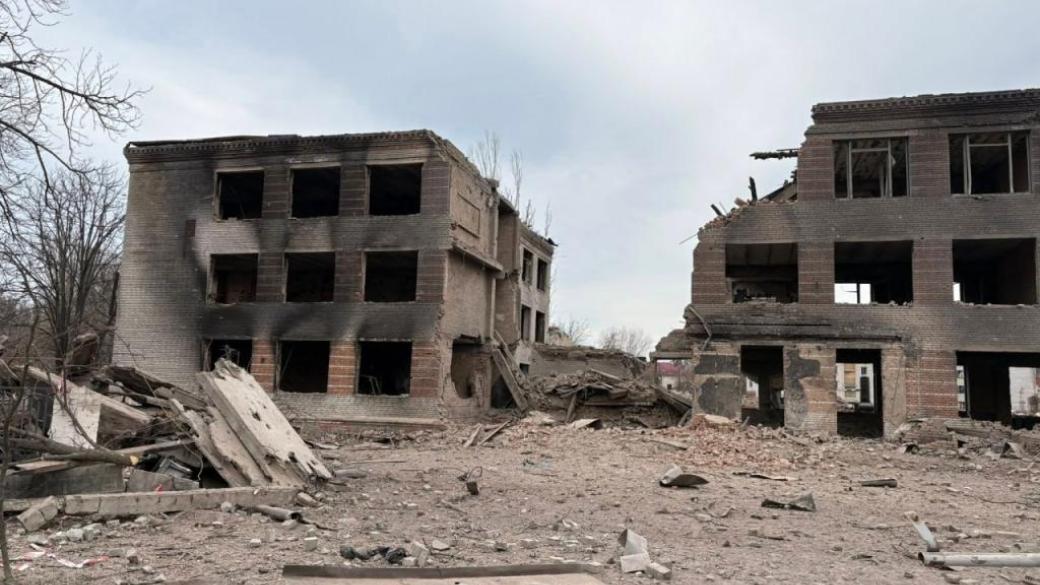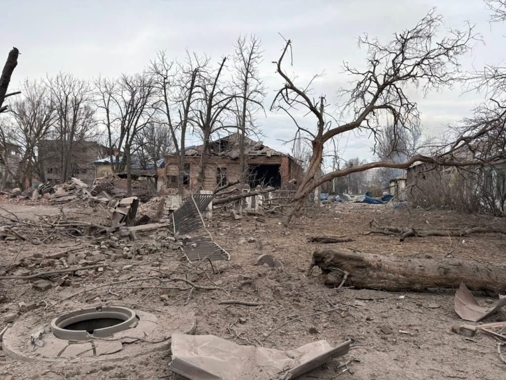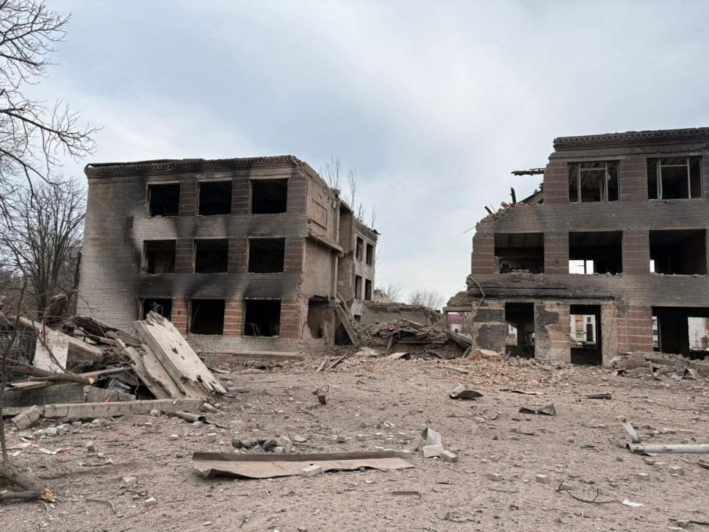 Оккупанты разрушили магазин и образовательное учреждение. Повреждены также соседние государственные учреждения, многоэтажные и частные жилые дома.