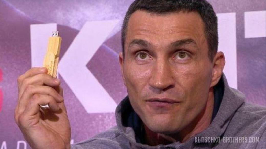 Владимир сообщил, что флешка вшита в его халат. Прогноз боксер записал на прошлой неделе, готовясь к поединку, сообщает «Братство Кличко». Деньги от продажи будут направлены в благотворительный фонд братьев Кличко.