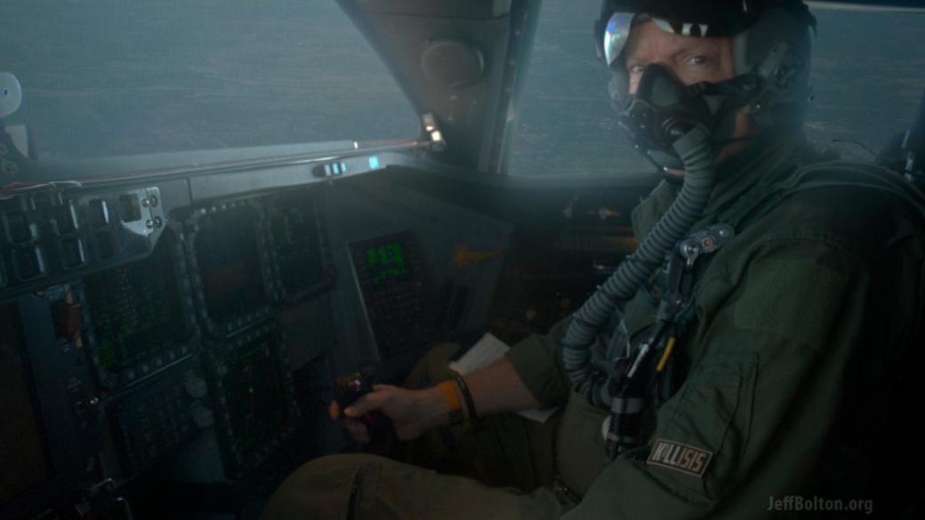 На видеозаписи видно, как журналист совершил полет в кресле второго пилота бомбардировщика В-2А с номером ВВС США 93−1086.