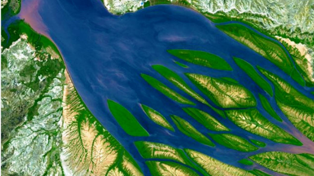 Сотрудники NASA поделилась ярким изображением Мозамбикского канала на северо-западной части Мадагаскара. данное фото демонстрирует соленые воды, соединяющие сток пресной воды реки Бецибука, образующей залив Бомбетока.
