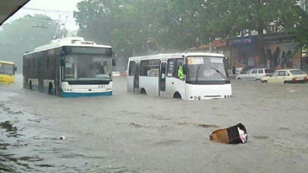 Общественный транспорт буквально тонул в воде, рассказывают жители Симферополя.
