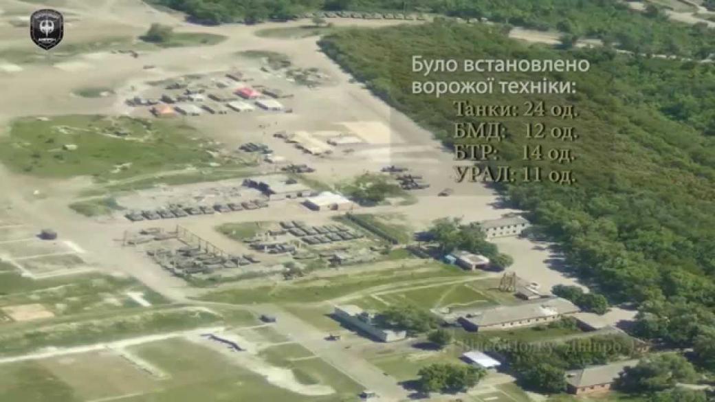 Судя по записи, база в н.п. Солнцево (Донецкая область) была обустроена буквально за две недели. Беспилотник «Днепра-1» 20 мая зафиксировал военную палатку и несколько полевых кухонь. Уже 6 июня, когда полк повторил аэрораздведку, на этой территории был развернут военный лагерь с бронетехникой.