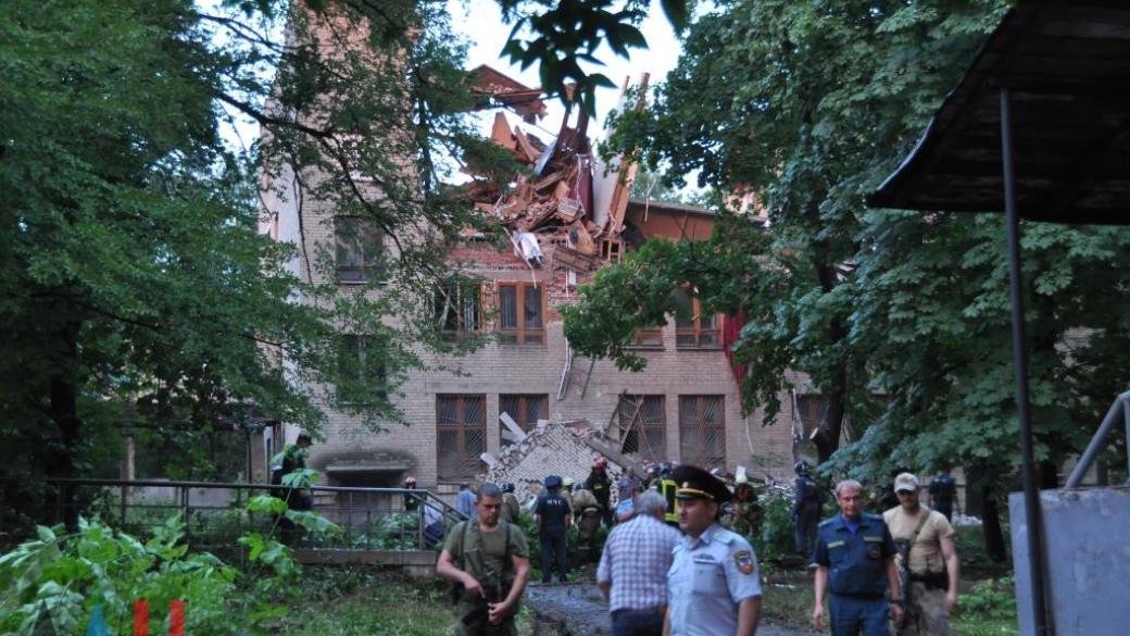 Пресс-служба «МЧС ДНР» сообщила: «В четвертом корпусе Донецкого национального университета экономики и торговли имени М. Туган-Барановского произошло обрушение кровли и двух межэтажных перекрытий площадью 400 квадратных метров над актовым залом правого крыла».