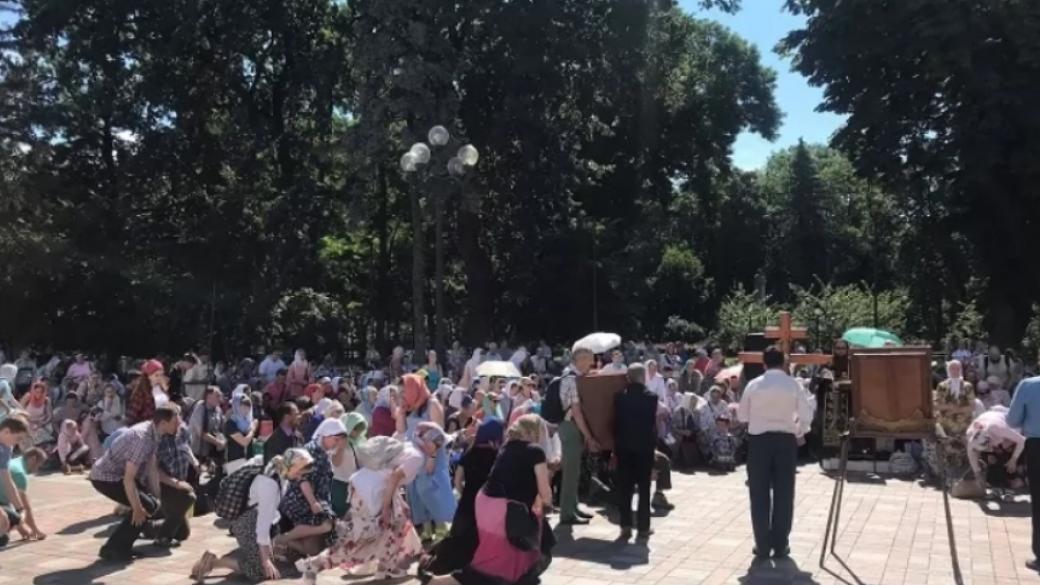 Верующие с плакатами образовали круг, в центре которого находился священник. После они встали на колени и молились. Плакаты, которые были у них в руках, красноречиво говорили о цели акции — противостоять «государству в смартфоне».