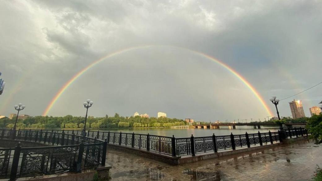 Вчера вечером, 29 июня, над захваченным НВФ Донецком были ливни. В отличие от предыдущего дня они не принесли серьезных затоплений и повреждений коммуникаций. Зато двойная радуга после грозы порадовала многих: в местных пабликах жители делились снимками города с двойной разноцветной дугой над ним.