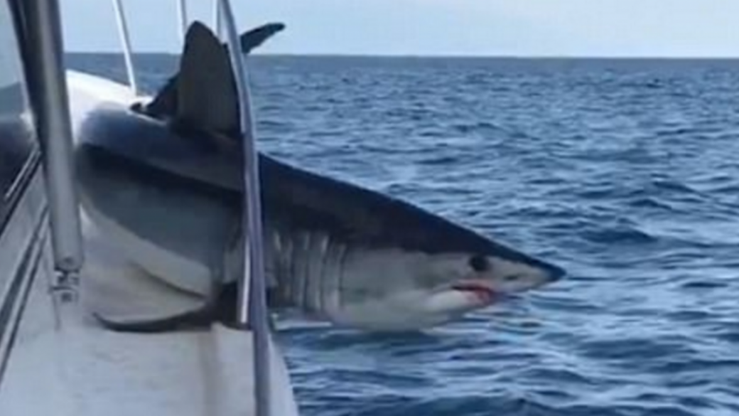 Фильм «Челюсти» в реальности: Акула запрыгнула на борт лодки