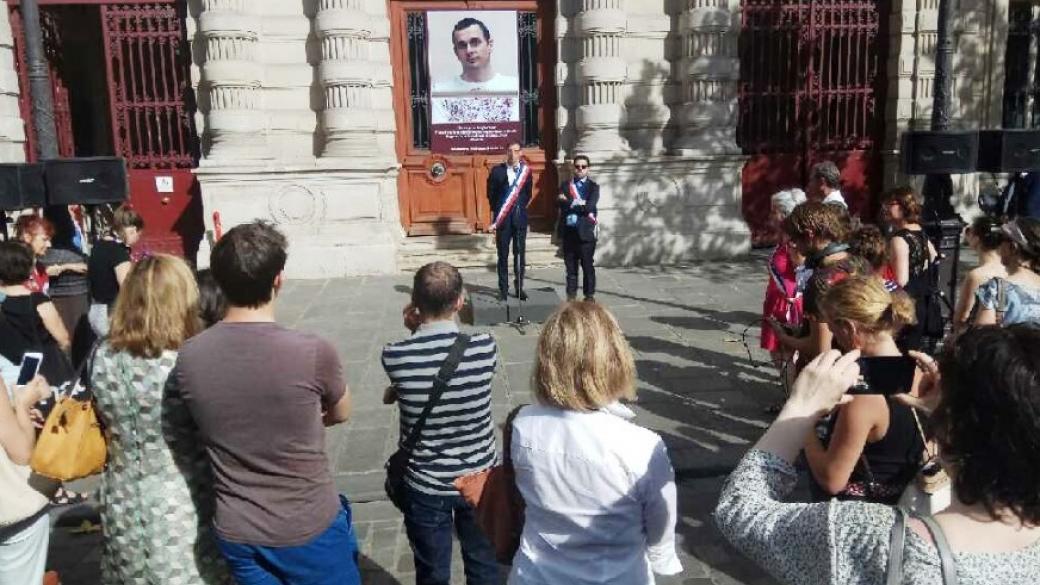 Заместитель мэра Парижа Патрик Клюгман отметил: "Полная поддержка Олега Сенцова, украинского кинематографиста, которого четыре года назад лишили свободы в России. Мы надеялись на его свободу, теперь мы боимся за его жизнь. Мы надеемся на справедливость. Для него справедливость означает свободу".