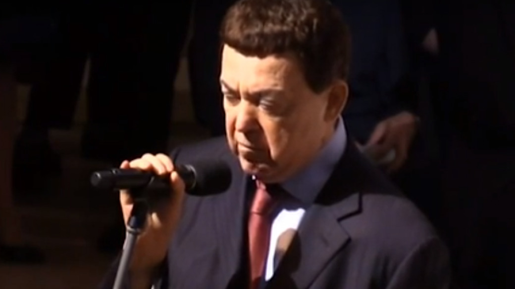 В сети опубликовали видео одного из последних появлений скончавшегося сегодня российского певца Иосифа Кобзона.