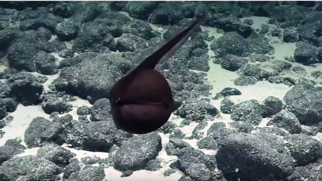 Ученым удалось снять на видео редкого морского монстра, обитающего на глубине 1425 метров возле Гавайских островов.