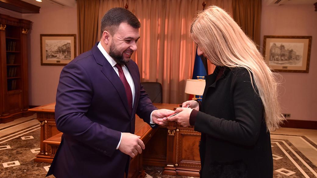 Сегодня так называемый «глава ДНР» Денис Пушилин вручил «паспорт ДНР» пианистке Валентине Лисице. Об этом сообщает пресс-служба «главы республики».